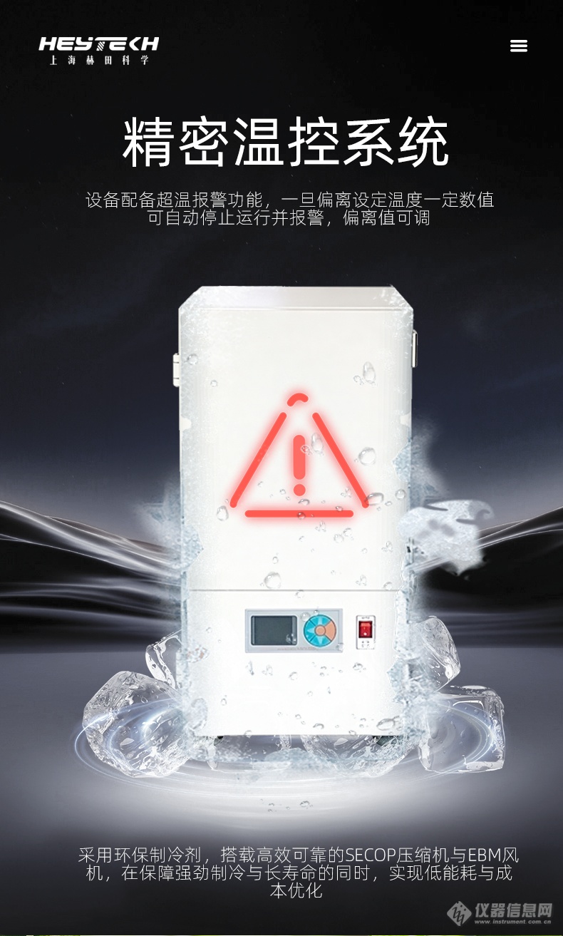 多重安全防护:标配超温报警(偏离值可调)、压缩机过载保护、过流保护等功能,确保设备与样品安全。