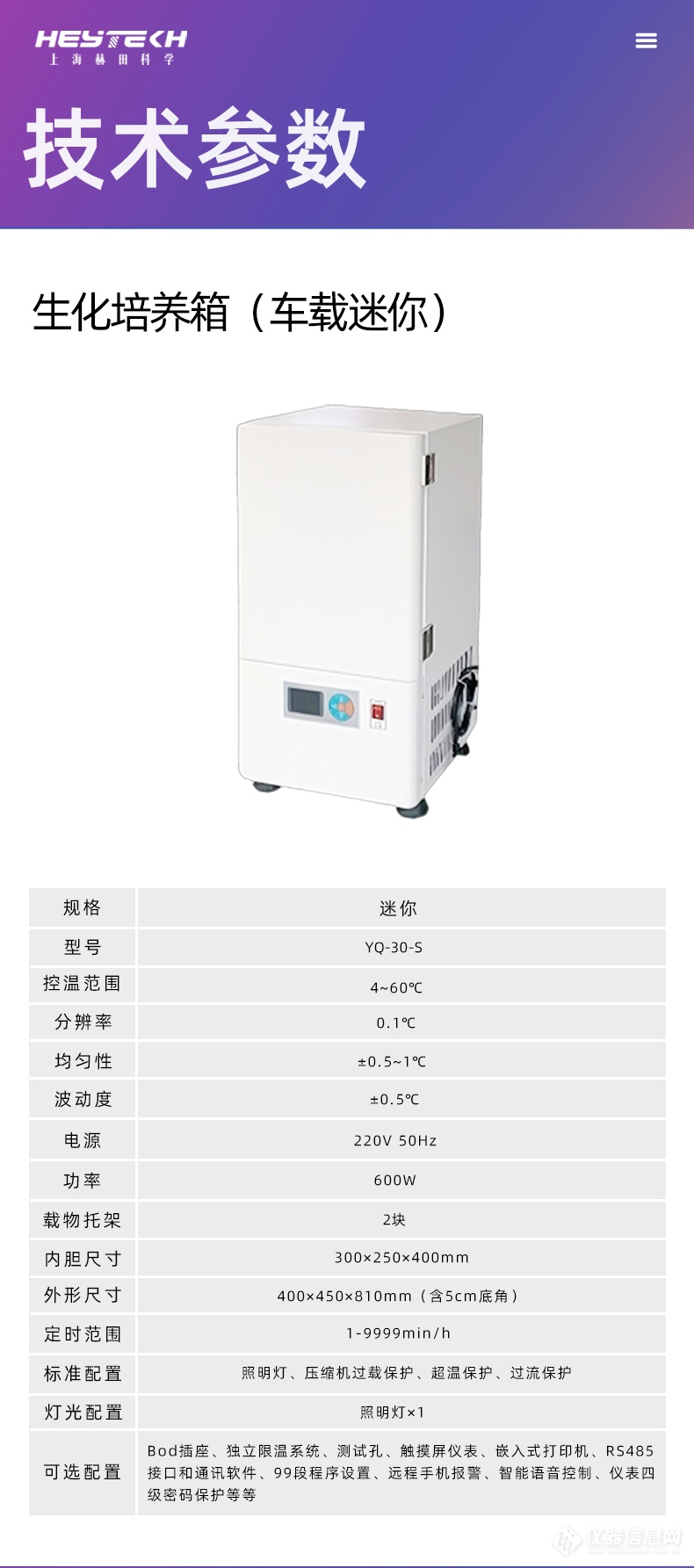可选配置 | BOD插座、独立限温系统、测试孔、触摸屏仪表、嵌入式打印机、RS485通讯、99段编程、远程报警、语音控制、密码保护等 |