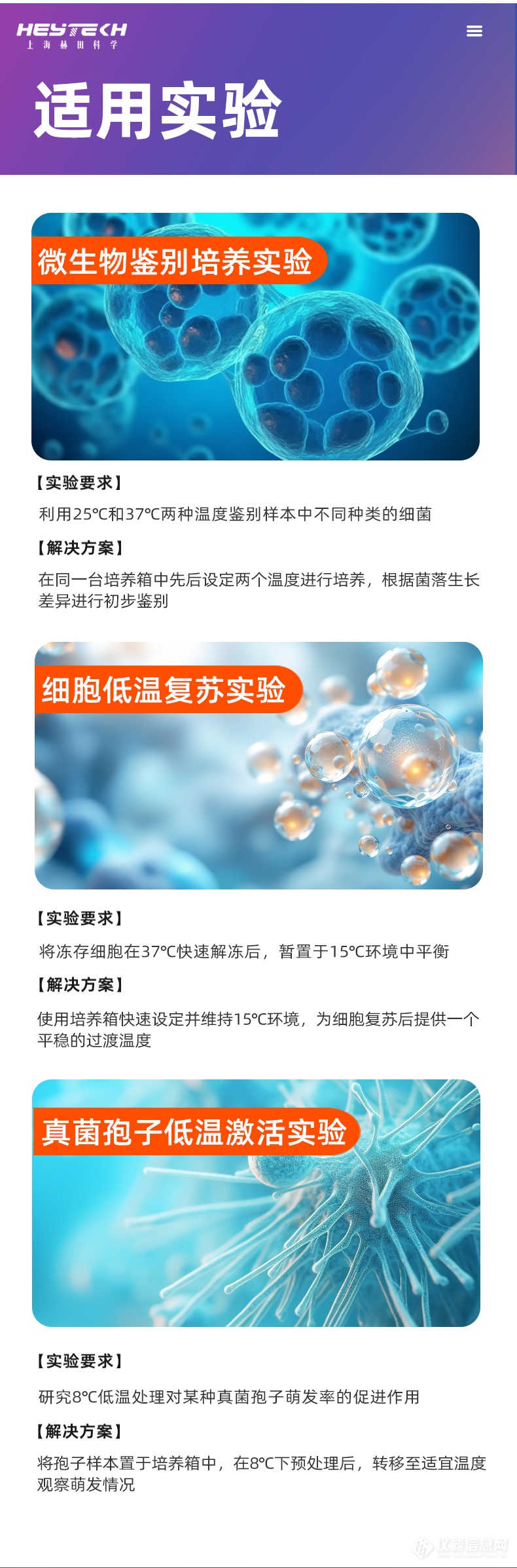 1、 微生物培养:细菌、真菌、酵母等低温或恒温培养。