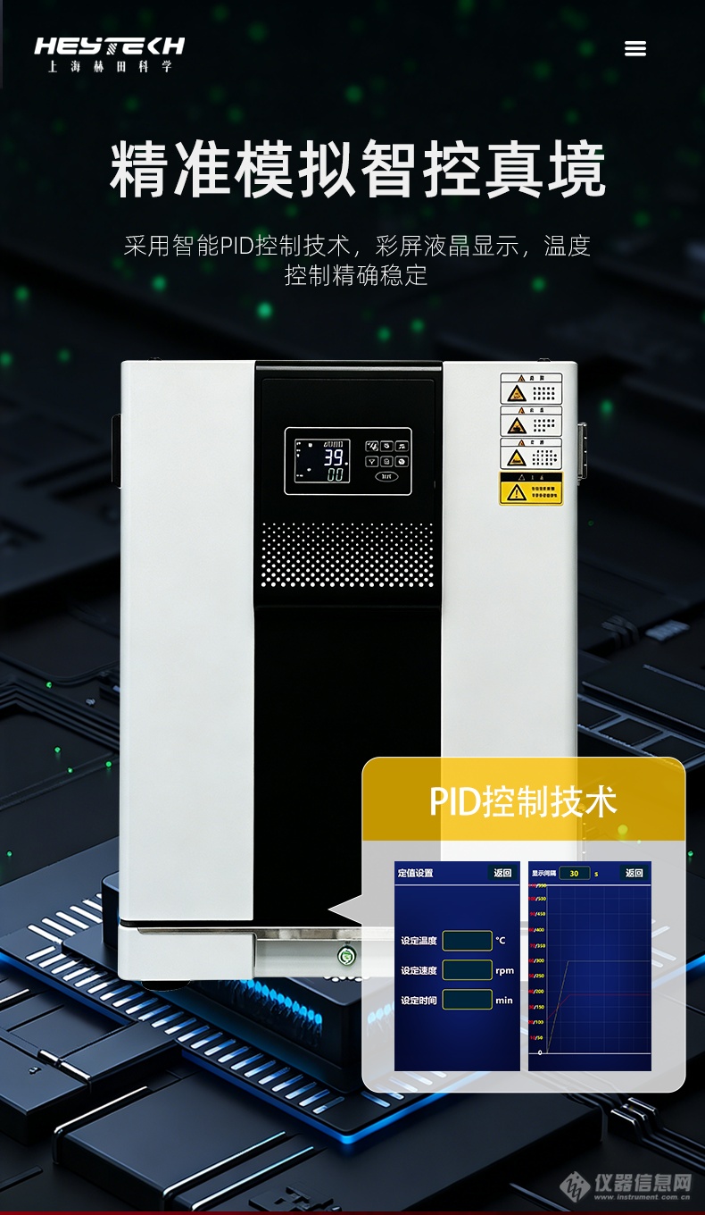 设备搭载智能PID控制技术,配合高精度PT100传感器,实现温度的精确设定与稳定维持。