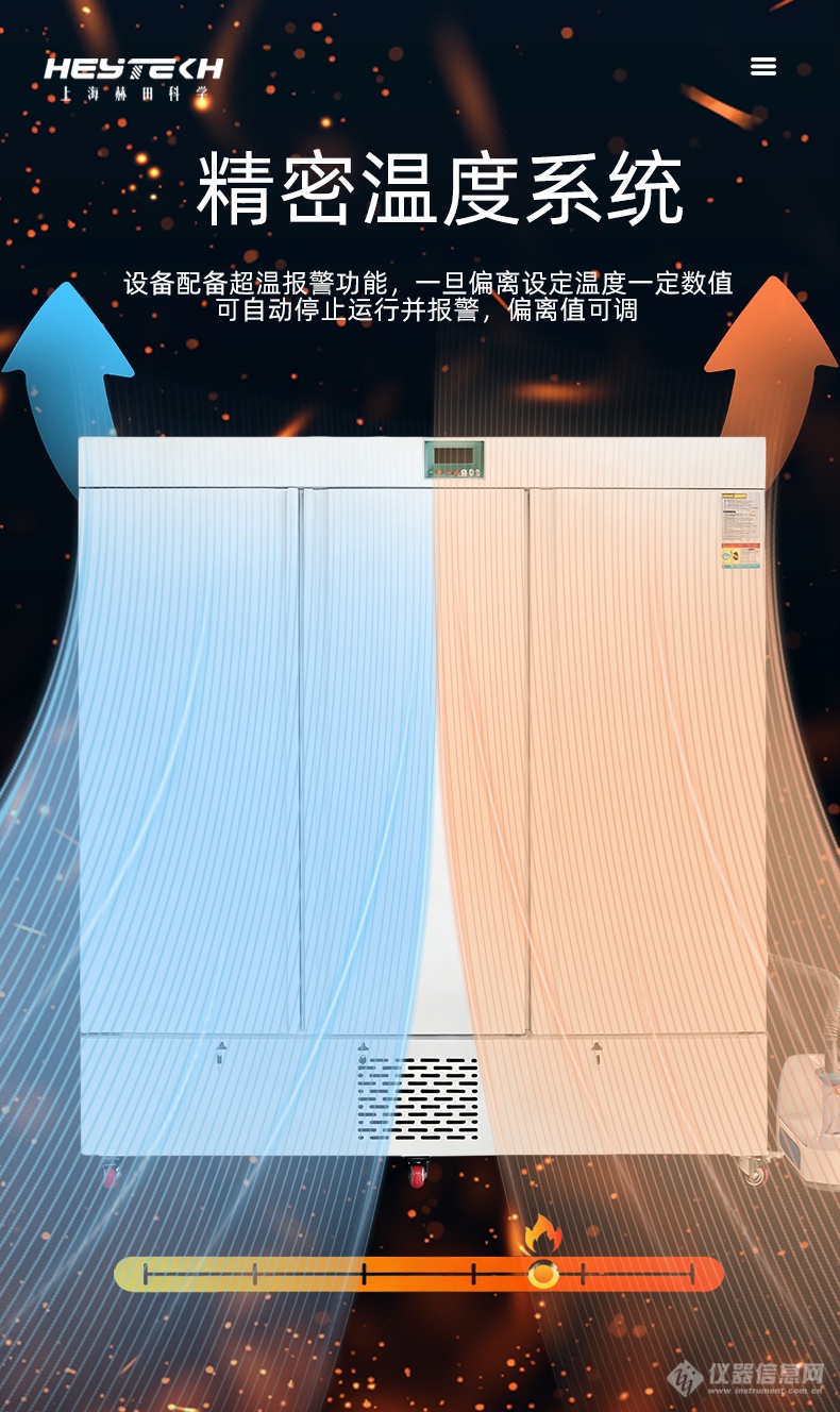 4) 丰富扩展:提供控湿模块(高精度传感器与快速响应系统)、测试孔、CO2;浓度控制、嵌入式打印机、远程手机报警等多种可选配置,满足个性化实验需求。