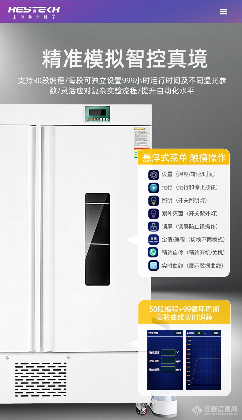 程序控制 | 30段编程,每段可独立设定时间、温度、光照强度及时间 |
