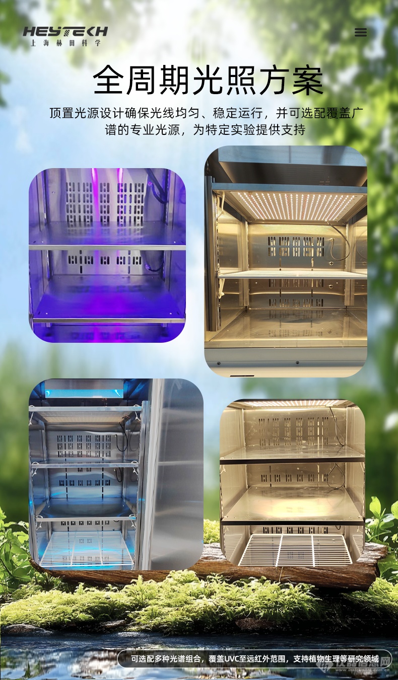 灵活可调的光照系统:提供四档光照强度配置(A-D款),覆盖从基础培养到高强度植物光合作用研究的广泛需求。侧光源配合0-100级无级调光,可实现精确的光照梯度设置和自然光强变化模拟。