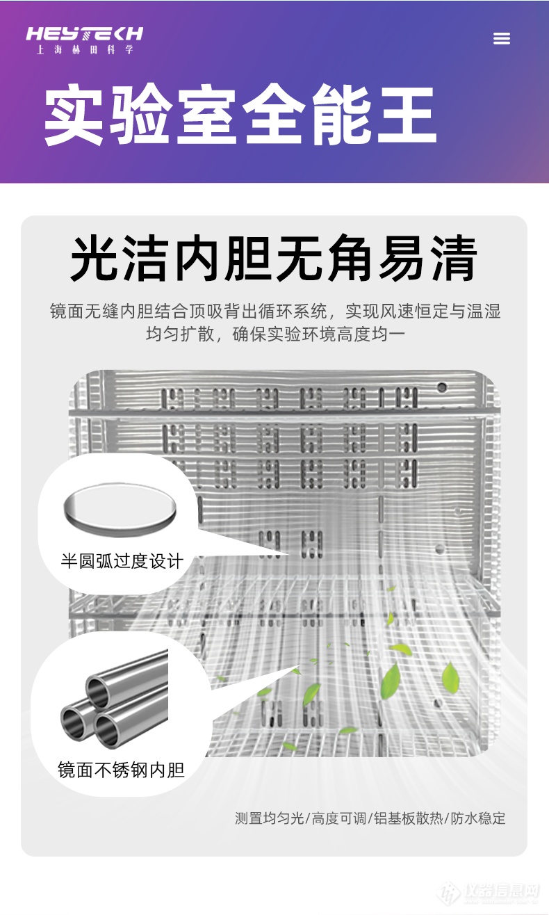 精准的环境模拟:采用PID模糊计算智能加热算法与双保险温控传感器,确保温度控制快速响应且高度稳定(波动度±0.5℃)。结合顶部吸风+背部出风的科学风道循环系统,箱内风速稳定,温场均匀性极佳,为实验提供高度一致的环境条件。