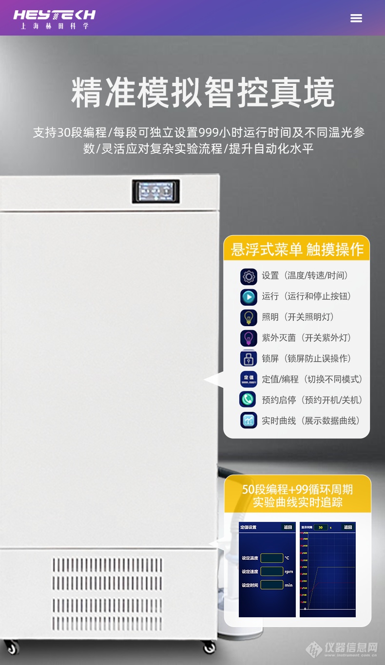 程序控制 | 最大30段程序,每段可独立设定运行时间(0-9999分钟/小时)及温度、光照参数 |