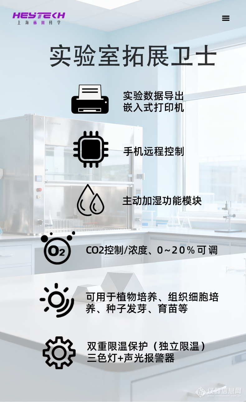 3) 环境扩展:主动加湿模块、光照培养功能(适用于植物培养、组织细胞培养、种子发芽等)