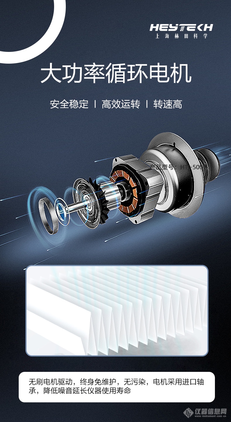高效无刷电机:无刷电机驱动,终身免维护,无污染;电机采用进口轴承,有效降低噪音,延长仪器使用寿命。