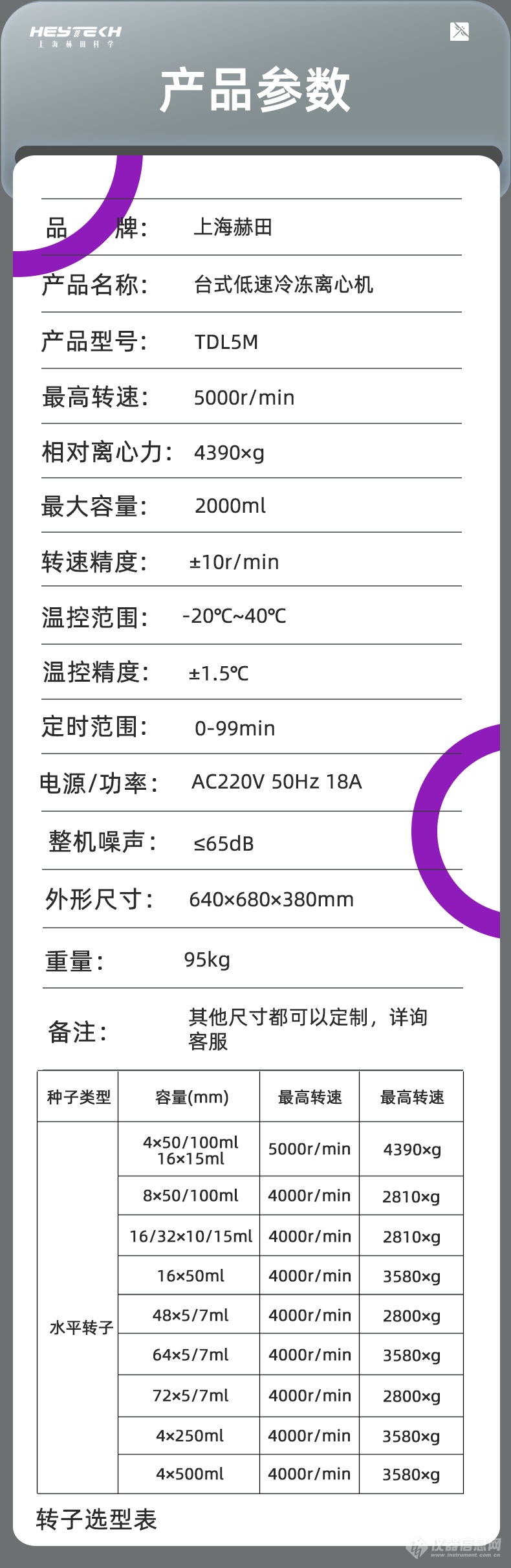 说明:以上转子均为水平转子,用户可根据实际样本容量和离心力需求选择合适的转子配置。